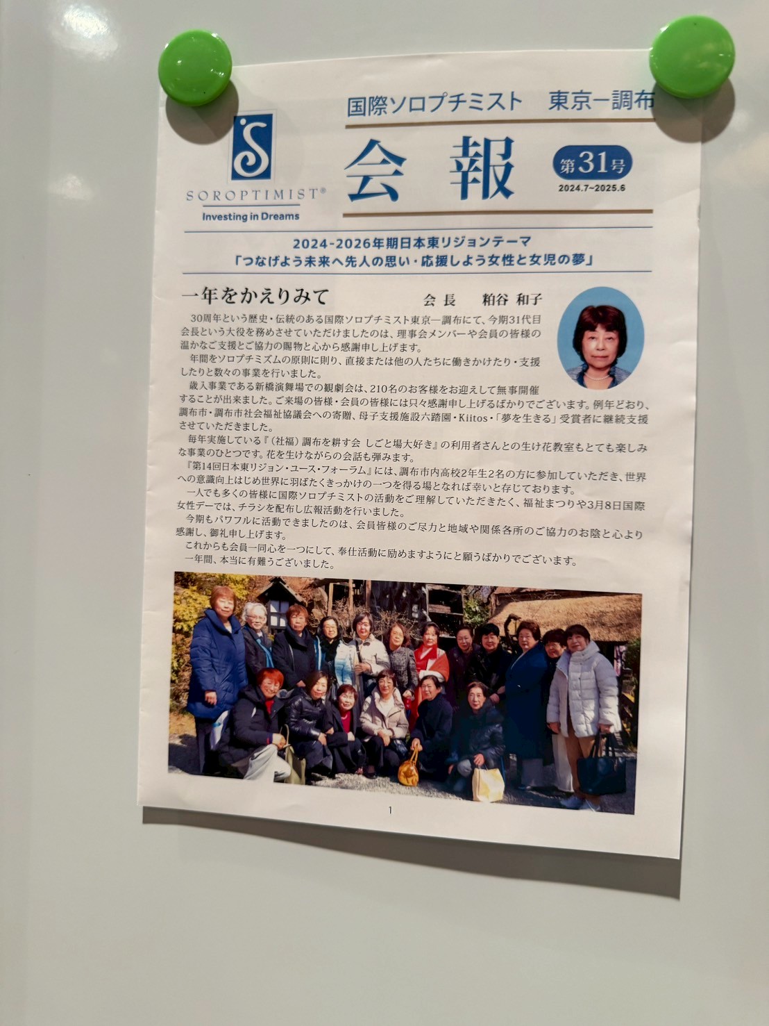 ・国際ソロプチミスト東京・調布様より会報、地区からのご案内が届いております。ともに掲示しありますのでご覧下さい。