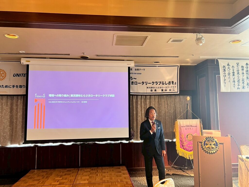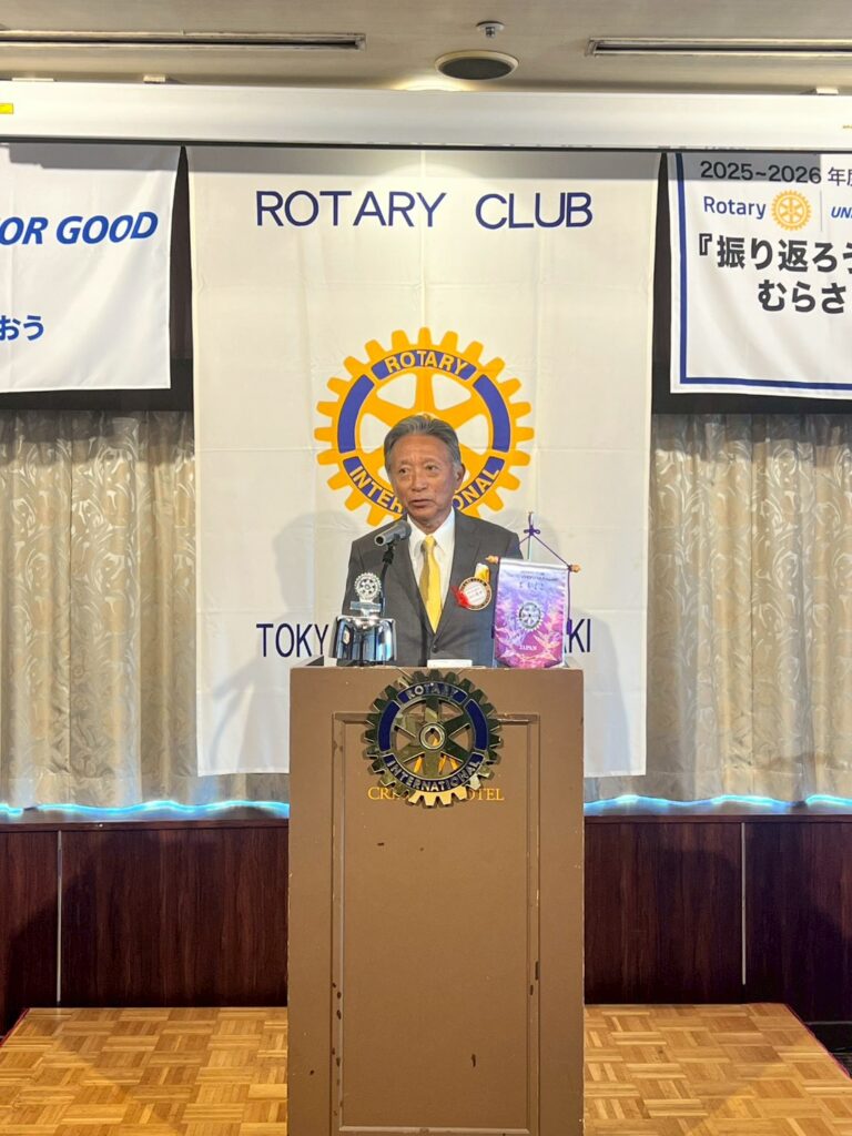 ・葉山公二/ 先日は創立35周年記念祝賀会にご参加いただき有難うございました。山口実行委員長、実行委員会の皆様お世話になりました。本日、FC東京 石川様、卓話を宜しくお願い致します。