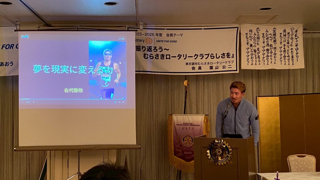 講師:陸上競技選手 右代 啓欣 様 卓話テーマ『夢を現実に変える力』