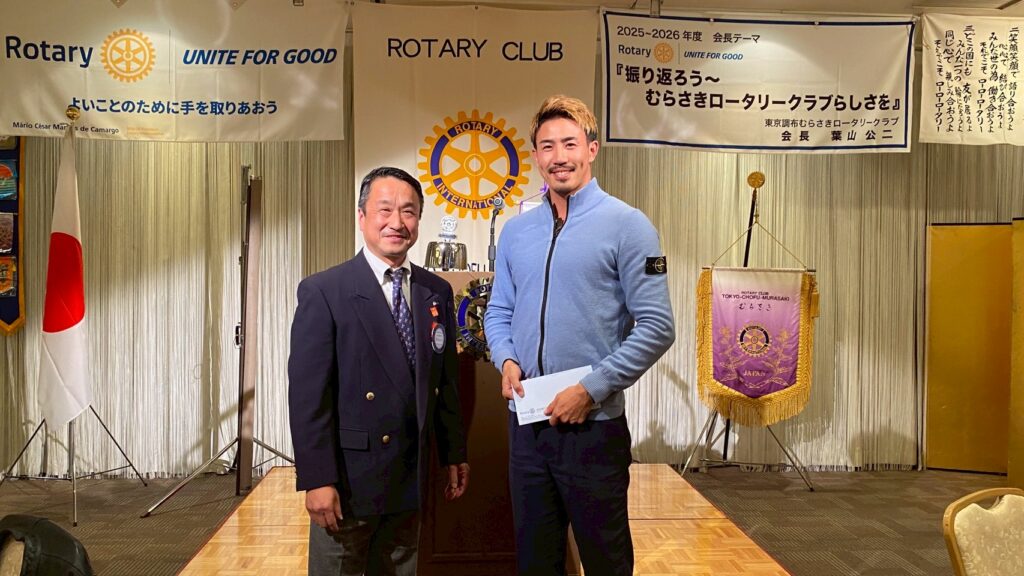 ・葉山公二/ 右代啓欣様、卓話よろしくお願い致します。日本選手権 優勝おめでとうございます。