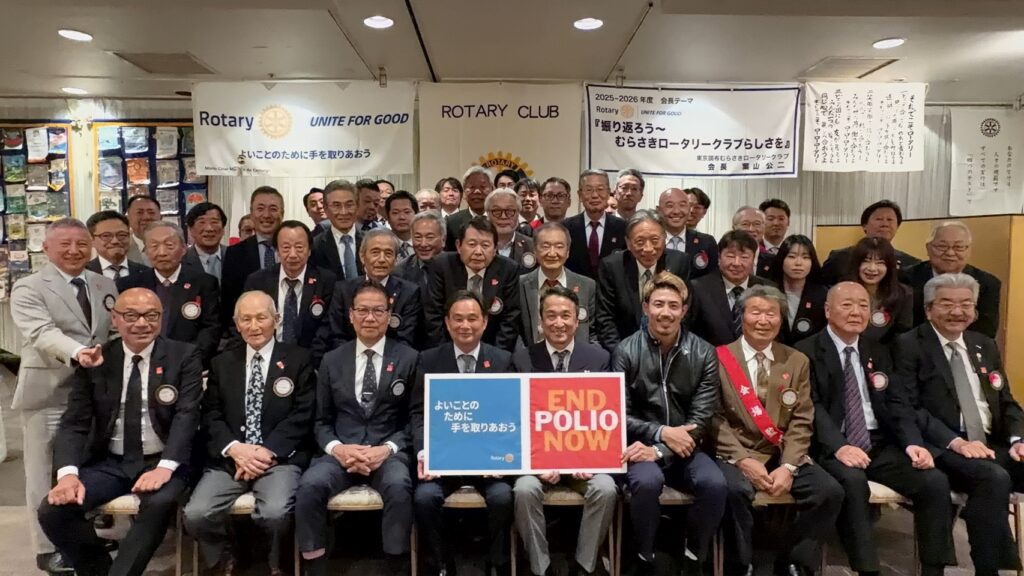 ・本日、例会終了後、「ポリオ根絶活動」といたしましてお配りいたしましたポリオのバッチを付け集合写真を撮りたいと思いますので、ご協力をお願い致します。