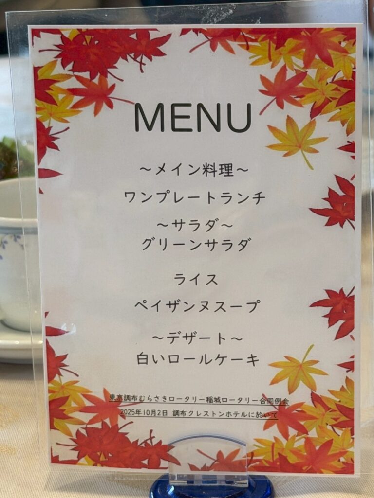 | 行事 | 東京稲城RC合同例会 | 第3回クラブ協議会 会長ノミニー発表 24-25年度決算報告 | 創立35周年記念例会 | ||