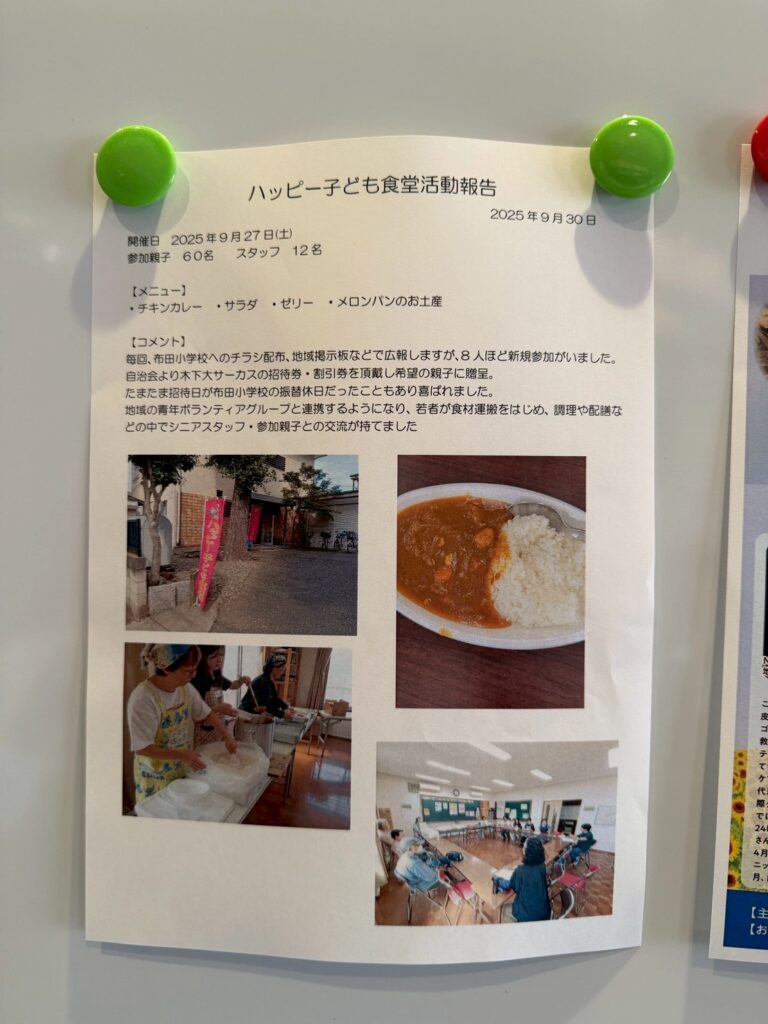 ・ハッピー子ども食堂から報告書が届いております。掲示してありますのでご覧ください。