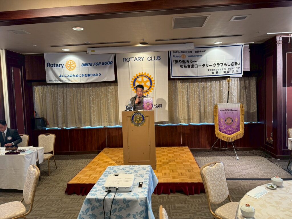 ・川部秀彦/トシ!むらさきロータリーの例会にようこそ!本日の卓話よろしくお願いします。