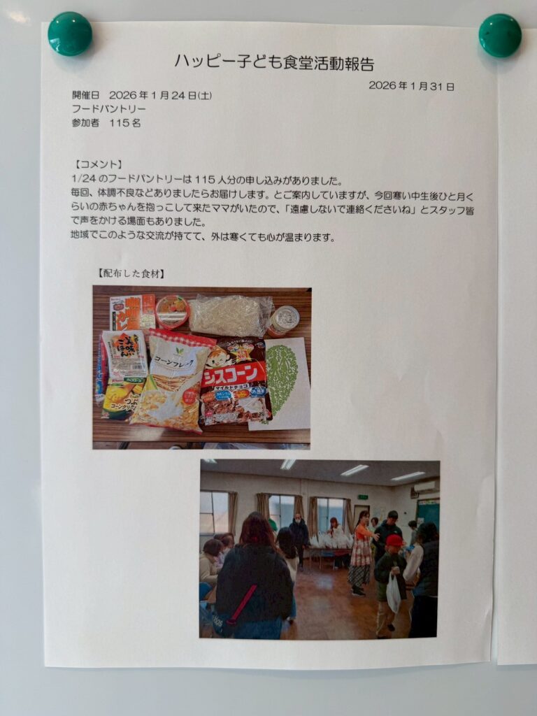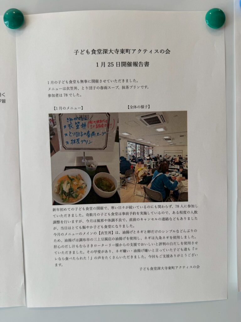 ・子ども食堂深大寺東町アクティスの会とハッピー子ども食堂より報告書が届いていておりますので掲示しております。